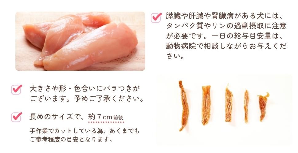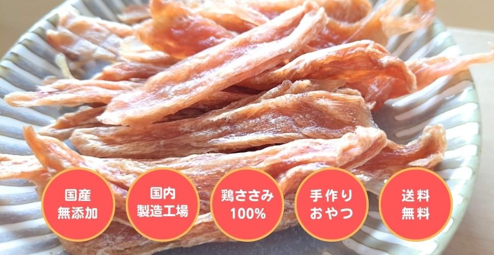 ◎国産・無添加 ◎国内製造工場 ◎鶏ささみ100% ◎無着色無香料 ◎保存料不使用 ◎酸化防止剤不使用
