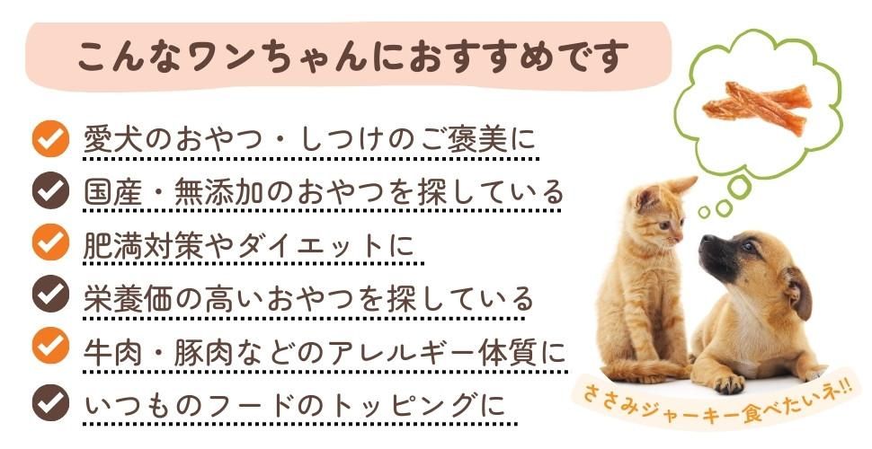 鶏ささみジャーキーは、与えやすいので手軽にタンパク質を補給できるおやつとしておすすめです。